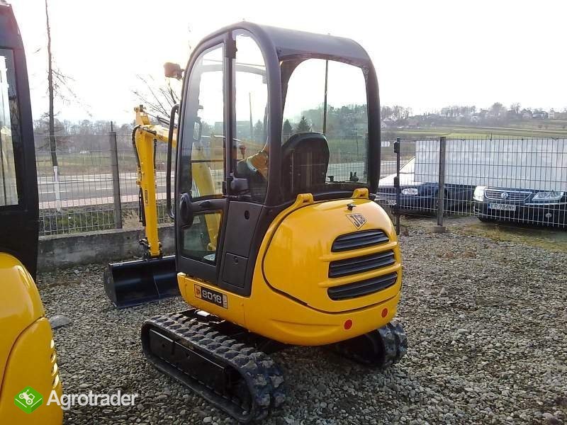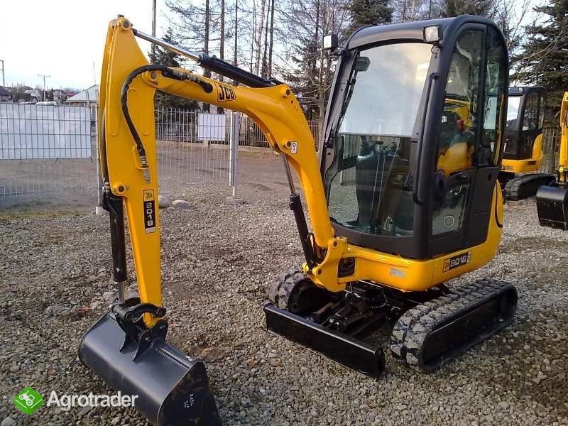 Sprzedam minikoparkę gąsienicową JCB 801,8 z silnikiem Perkinsa o mocy 19 kM o masie 1580kg. Rok produkcji: 2009. Zamknięta, przeszklona i ogrzewana kabina, lemiesz hydraulicznie sterowany. Linia do młota lub wiertnicy. Stan maszyny idealny. Gotowa do pracy. Bardzo mało eksploatowana, mocna maszyna!!!!! Dwa biegi jazdy, rozsuwane gąsienice. Trzy łyżki w komplecie. Przebieg to jedynie 602mtg!
