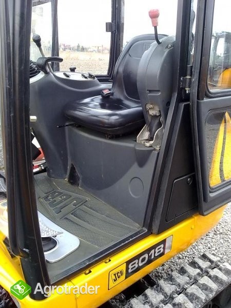 Okazja! Mini koparka JCB 8018 . Rocznik: 2007. Stan techniczny: idealny. Wyposażenie: hydraulicznie rozsuwane gąsienice gumowe, lemiesz hydraulicznie sterowany, instalacja do młota wyburzeniowego lub innych osprzętów (wiertnicy lub nożyc), zamknięta, przeszklona i ogrzewana kabina. Silnik: Perkins Diesel o mocy 20kM. Głębokość kopania: 2,2 metra. Waga maszyny: 1585kg. Przebieg: 905 MTG. W komplecie trzy łyżki koparkowe. Polecamy!