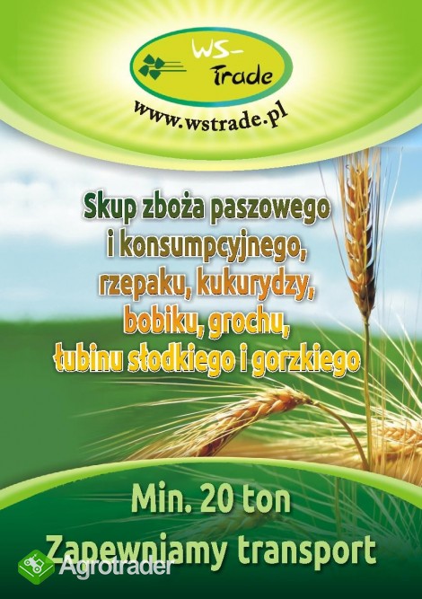 Kupię zboża paszowe i konsumpcyjne: pszenicę, pszenżyto, owies, jęczmień, żyto, RZEPAK, grykę, soję, peluszkę, bobik, groch, łubin słodki, kukurydzę, wymagane ilości min 20t zapewniam transport. skup w rejonie całej Polski SKUPUJEMY RÓWNIEŻ ZBOŻA EKOLOGICZNE tel. 504082106