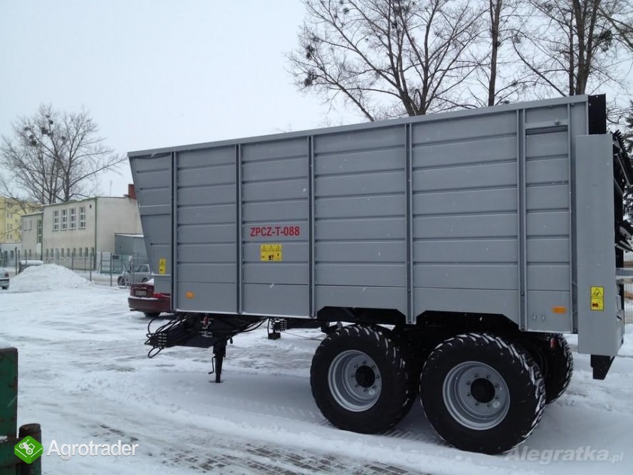 Ponadto (po przebudowaniu - montaż nadstawek) może pracować jako przyczepa objętościowa do transportu materiałów, takich jak zielonki z traw i kukurydzy. Stąd uniwersalność zastosowań pozwala na szerokie wykorzystanie maszyny w ciągu całego roku.